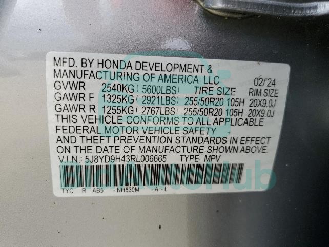 | VIN | 5J8YD9H43RL006665 |