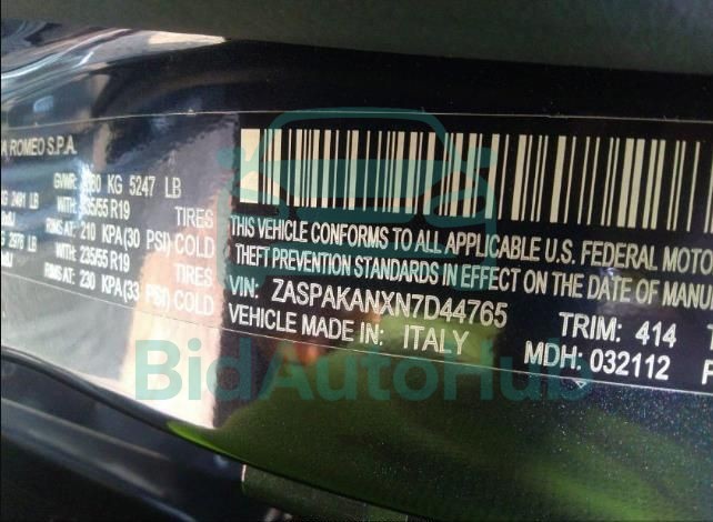 This ALFA ROMEO STELVIO 2022 - VIN: ZASPAKANXN7D44765 was originally purchased at one of the major insurance auctions in the United States or Canada. The vehicle history is tied directly to its VIN code, which makes it possible to track the origin, condition, and circumstances of the sale. The photographs provided represent the actual state of the car at the moment of auction and serve as an important visual record of its technical and cosmetic condition.