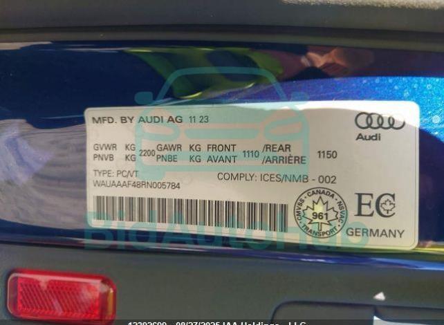 This AUDI A4 2024 - VIN: WAUAAAF48RN005784 was originally purchased at one of the major insurance auctions in the United States or Canada. The vehicle history is tied directly to its VIN code, which makes it possible to track the origin, condition, and circumstances of the sale. The photographs provided represent the actual state of the car at the moment of auction and serve as an important visual record of its technical and cosmetic condition.