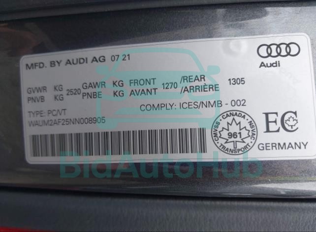 | VIN | WAUM2AF25NN008905 |