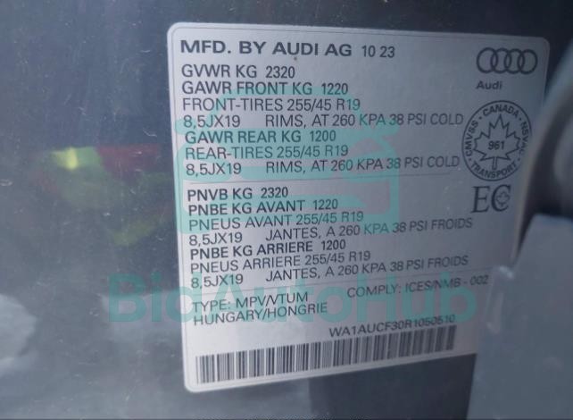 Each lot presented on our website includes comprehensive information tied to the VIN code. This allows users to cross-check vehicle data, verify the history of ownership, and confirm accident or insurance records. The AUDI Q3 2024 - VIN: WA1AUCF30R1050510 corresponds to a car that was listed through one of the large insurance auctions in USA, which guarantees traceability and transparency of the information.