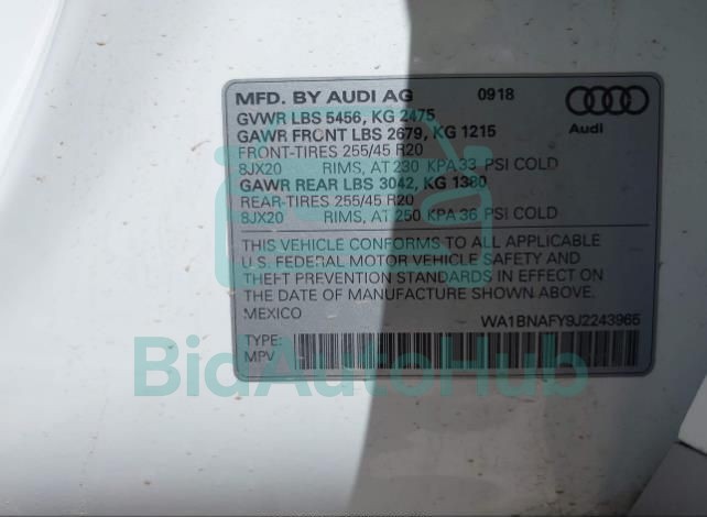 Each lot presented on our website includes comprehensive information tied to the VIN code. This allows users to cross-check vehicle data, verify the history of ownership, and confirm accident or insurance records. The AUDI Q5 2018 - VIN: WA1BNAFY9J2243965 corresponds to a car that was listed through one of the large insurance auctions in USA, which guarantees traceability and transparency of the information.