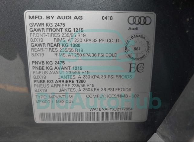 Each lot presented on our website includes comprehensive information tied to the VIN code. This allows users to cross-check vehicle data, verify the history of ownership, and confirm accident or insurance records. The AUDI Q5 2018 - VIN: WA1BNAFYXJ2177054 corresponds to a car that was listed through one of the large insurance auctions in USA, which guarantees traceability and transparency of the information.