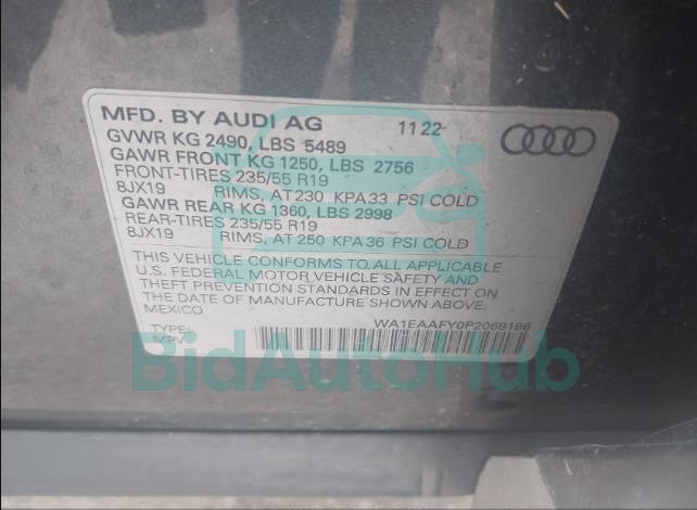 This AUDI Q5 2023 - VIN: WA1EAAFY0P2069186 was originally purchased at one of the major insurance auctions in the United States or Canada. The vehicle history is tied directly to its VIN code, which makes it possible to track the origin, condition, and circumstances of the sale. The photographs provided represent the actual state of the car at the moment of auction and serve as an important visual record of its technical and cosmetic condition.