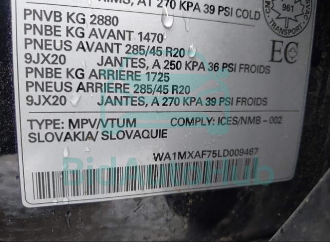 | VIN | WA1MXAF75LD009467 |
