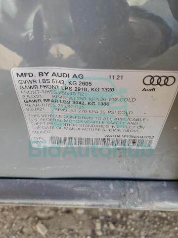 This AUDI SQ5 2022 - VIN: WA1B4AFY3N2041003 was originally purchased at one of the major insurance auctions in the United States or Canada. The vehicle history is tied directly to its VIN code, which makes it possible to track the origin, condition, and circumstances of the sale. The photographs provided represent the actual state of the car at the moment of auction and serve as an important visual record of its technical and cosmetic condition.