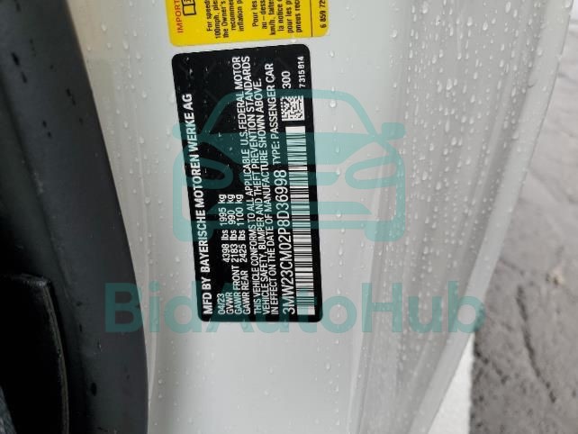 The BMW 2 SERIES 2023 - VIN: 3MW23CM02P8D36998 is equipped with a 2.0L 4 engine. This power unit is known for its efficiency and reliability, and it is part of modern generation of engines designed to balance performance with fuel economy. According to the auction data, the vehicle was registered with only 4202 miles of mileage at the time of sale.