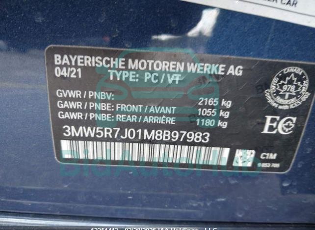 This BMW 3 SERIES 2021 - VIN: 3MW5R7J01M8B97983 was originally purchased at one of the major insurance auctions in the United States or Canada. The vehicle history is tied directly to its VIN code, which makes it possible to track the origin, condition, and circumstances of the sale. The photographs provided represent the actual state of the car at the moment of auction and serve as an important visual record of its technical and cosmetic condition.