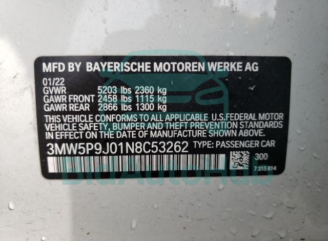 BMW 3 SERIES 2022 — VIN: 3MW5P9J01N8C53262