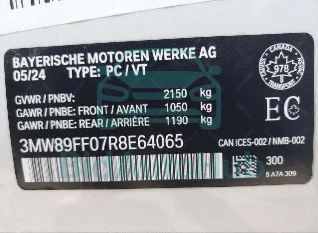 | VIN | 3MW89FF07R8E64065 |