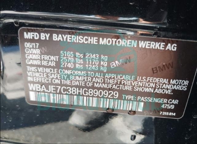 Each lot presented on our website includes comprehensive information tied to the VIN code. This allows users to cross-check vehicle data, verify the history of ownership, and confirm accident or insurance records. The BMW 5 SERIES 2017 - VIN: WBAJE7C38HG890929 corresponds to a car that was listed through one of the large insurance auctions in USA, which guarantees traceability and transparency of the information.