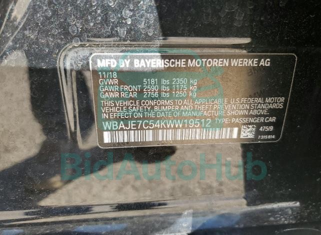 BMW 5 SERIES 2019 — VIN: WBAJE7C54KWW19512