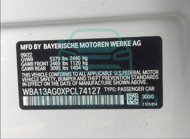| VIN | WBA13AG0XPCL74127 |