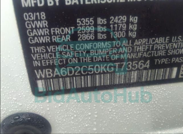 BMW 6 SERIES 2019 — VIN: WBA6D2C50KGT73564