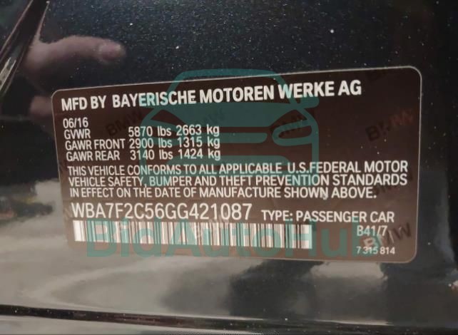 | VIN | WBA7F2C56GG421087 |