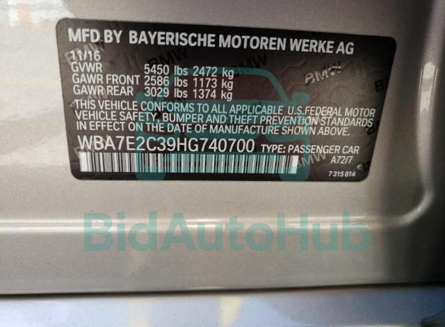 BMW 7 SERIES 2017 — VIN: WBA7E2C39HG740700