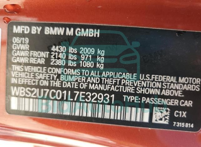 Each lot presented on our website includes comprehensive information tied to the VIN code. This allows users to cross-check vehicle data, verify the history of ownership, and confirm accident or insurance records. The BMW M2 2020 - VIN: WBS2U7C01L7E32931 corresponds to a car that was listed through one of the large insurance auctions in USA, which guarantees traceability and transparency of the information.