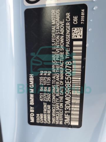 The BMW M2 2024 - VIN: 3MF13DM09R8E50078 is equipped with a 3.0l 6 engine. This power unit is known for its efficiency and reliability, and it is part of modern generation of engines designed to balance performance with fuel economy. According to the auction data, the vehicle was registered with only 3059 miles of mileage at the time of sale.