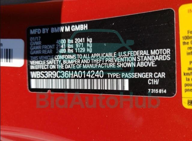 This BMW M4 2017 - VIN: WBS3R9C36HA014240 was originally purchased at one of the major insurance auctions in the United States or Canada. The vehicle history is tied directly to its VIN code, which makes it possible to track the origin, condition, and circumstances of the sale. The photographs provided represent the actual state of the car at the moment of auction and serve as an important visual record of its technical and cosmetic condition.