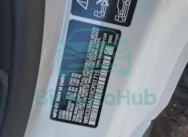 This BMW M4 2024 - VIN: WBS33BA01RCP01715 was originally purchased at one of the major insurance auctions in the United States or Canada. The vehicle history is tied directly to its VIN code, which makes it possible to track the origin, condition, and circumstances of the sale. The photographs provided represent the actual state of the car at the moment of auction and serve as an important visual record of its technical and cosmetic condition.