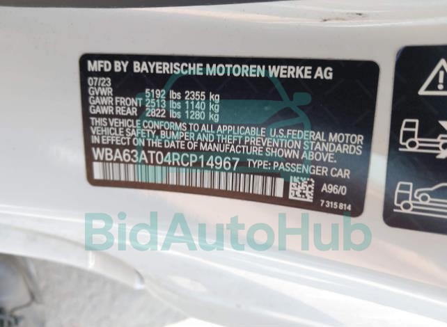 Each lot presented on our website includes comprehensive information tied to the VIN code. This allows users to cross-check vehicle data, verify the history of ownership, and confirm accident or insurance records. The BMW M440I 2024 - VIN: WBA63AT04RCP14967 corresponds to a car that was listed through one of the large insurance auctions in USA, which guarantees traceability and transparency of the information.