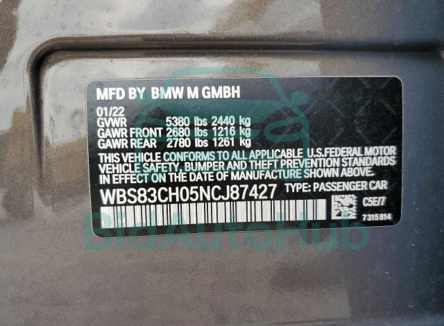 This BMW M5 2022 - VIN: WBS83CH05NCJ87427 was originally purchased at one of the major insurance auctions in the United States or Canada. The vehicle history is tied directly to its VIN code, which makes it possible to track the origin, condition, and circumstances of the sale. The photographs provided represent the actual state of the car at the moment of auction and serve as an important visual record of its technical and cosmetic condition.