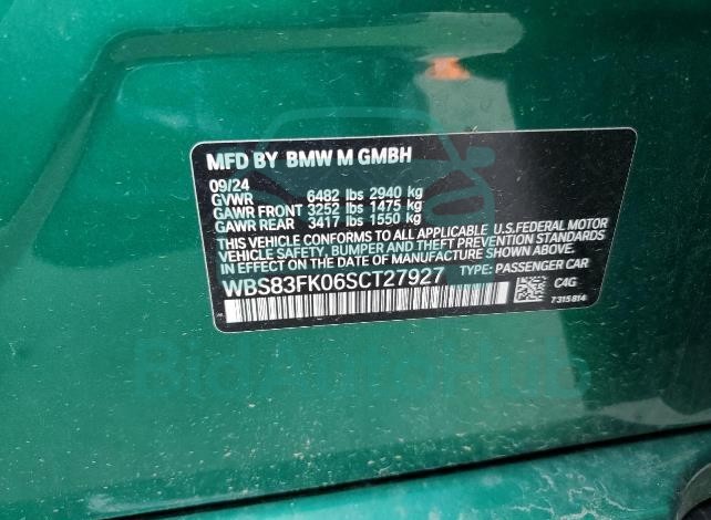 This BMW M5 2025 - VIN: WBS83FK06SCT27927 was originally purchased at one of the major insurance auctions in the United States or Canada. The vehicle history is tied directly to its VIN code, which makes it possible to track the origin, condition, and circumstances of the sale. The photographs provided represent the actual state of the car at the moment of auction and serve as an important visual record of its technical and cosmetic condition.