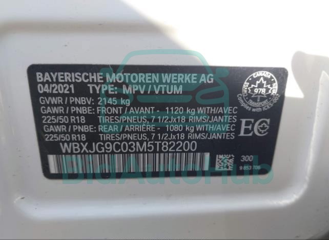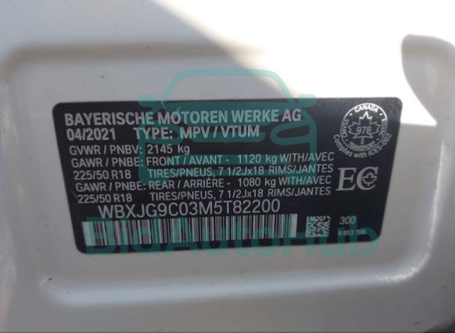 BMW X1 2021 — VIN: WBXJG9C03M5T82200