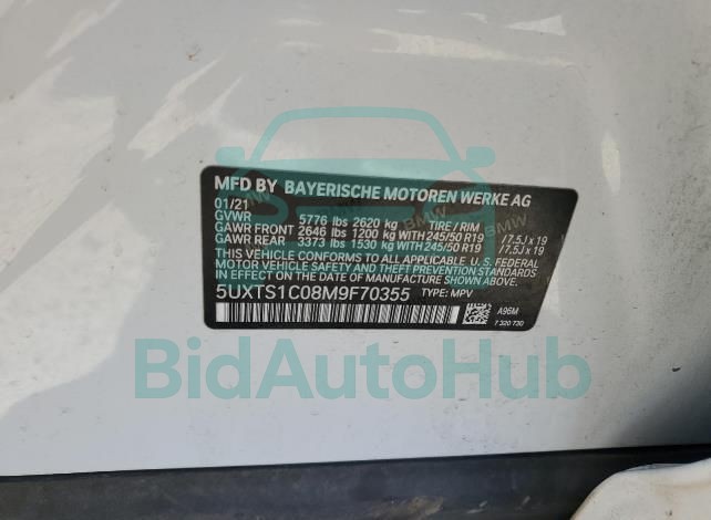 BMW X3 2021 — VIN: 5UXTS1C08M9F70355