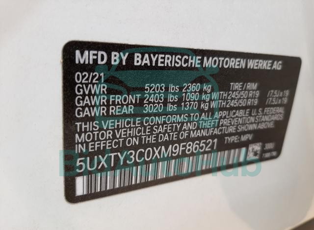 The BMW X3 2021 - VIN: 5UXTY3C0XM9F86521 is equipped with a 2.0L 4 engine. This power unit is known for its efficiency and reliability, and it is part of modern generation of engines designed to balance performance with fuel economy. According to the auction data, the vehicle was registered with only of mileage at the time of sale.