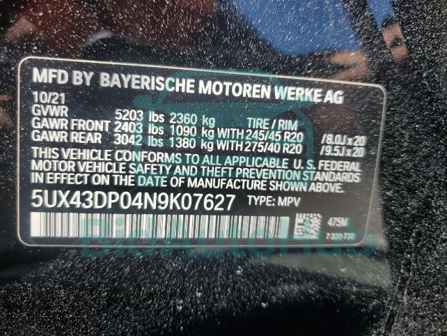 This BMW X3 2022 - VIN: 5UX43DP04N9K07627 was originally purchased at one of the major insurance auctions in the United States or Canada. The vehicle history is tied directly to its VIN code, which makes it possible to track the origin, condition, and circumstances of the sale. The photographs provided represent the actual state of the car at the moment of auction and serve as an important visual record of its technical and cosmetic condition.