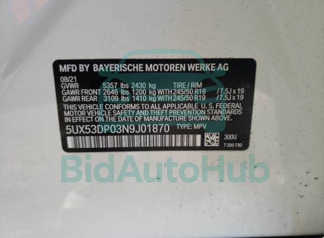 For a full understanding of the condition of this BMW X3 2022 - VIN: 5UX53DP03N9J01870, it is strongly advised to analyze all available materials β both technical specifications and auction photographs. Such analysis provides the most objective picture of the carβs history, its advantages, and its potential defects.