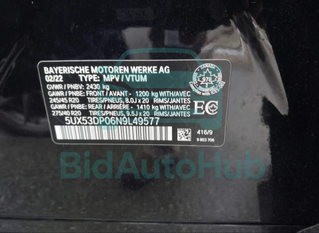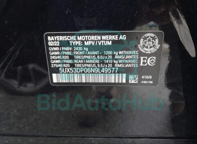 | VIN | 5UX53DP06N9L49577 |