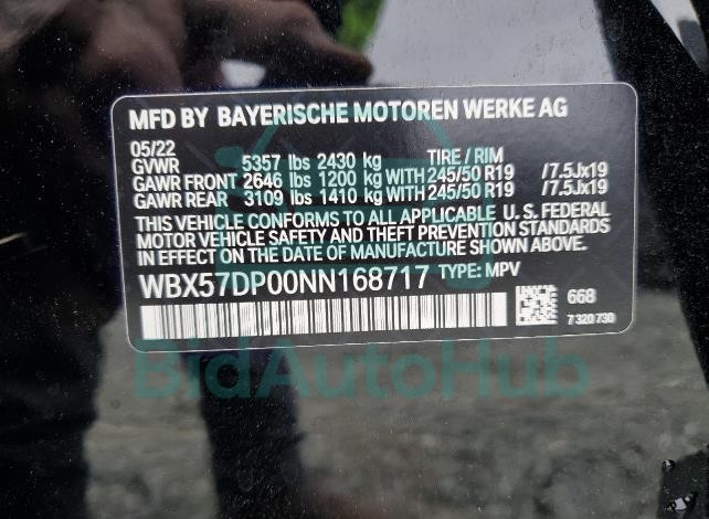 This BMW X3 2022 - VIN: WBX57DP00NN168717 was originally purchased at one of the major insurance auctions in the United States or Canada. The vehicle history is tied directly to its VIN code, which makes it possible to track the origin, condition, and circumstances of the sale. The photographs provided represent the actual state of the car at the moment of auction and serve as an important visual record of its technical and cosmetic condition.