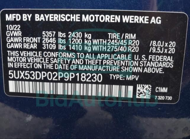 | VIN | 5UX53DP02P9P18230 |