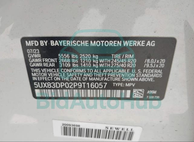 | VIN | 5UX83DP02P9T16057 |