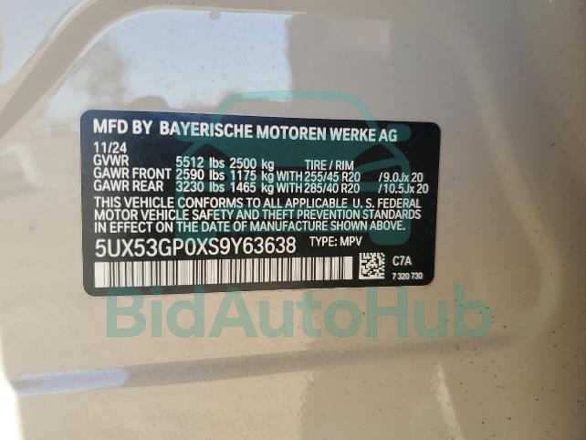 This BMW X3 2025 - VIN: 5UX53GP0XS9Y63638 was originally purchased at one of the major insurance auctions in the United States or Canada. The vehicle history is tied directly to its VIN code, which makes it possible to track the origin, condition, and circumstances of the sale. The photographs provided represent the actual state of the car at the moment of auction and serve as an important visual record of its technical and cosmetic condition.