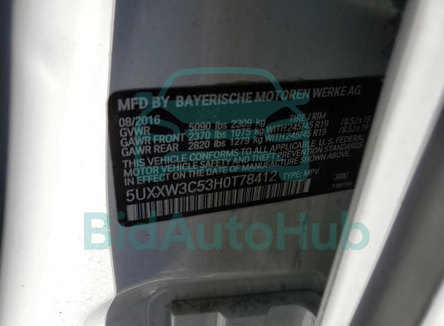 | VIN | 5UXXW3C53H0T78412 |