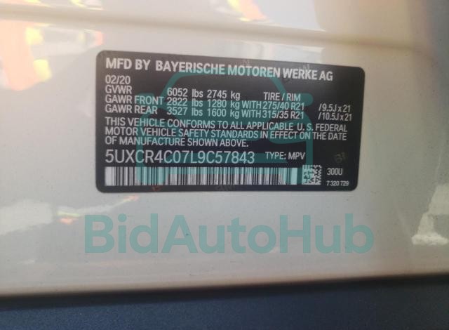 The BMW X5 2020 - VIN: 5UXCR4C07L9C57843 is equipped with a 3.0l 6 engine. This power unit is known for its efficiency and reliability, and it is part of modern generation of engines designed to balance performance with fuel economy. According to the auction data, the vehicle was registered with only 20613 miles of mileage at the time of sale.