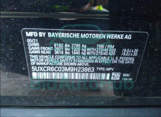The BMW X5 2021 - VIN: 5UXCR6C03M9H23863 is equipped with a 3.0l i6 n engine. This power unit is known for its efficiency and reliability, and it is part of modern generation of engines designed to balance performance with fuel economy. According to the auction data, the vehicle was registered with only of mileage at the time of sale.