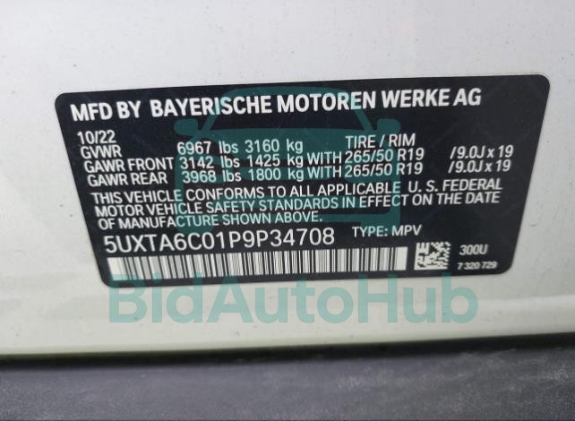 This BMW X5 2023 - VIN: 5UXTA6C01P9P34708 was originally purchased at one of the major insurance auctions in the United States or Canada. The vehicle history is tied directly to its VIN code, which makes it possible to track the origin, condition, and circumstances of the sale. The photographs provided represent the actual state of the car at the moment of auction and serve as an important visual record of its technical and cosmetic condition.