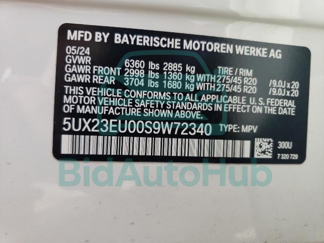 This BMW X5 2025 - VIN: 5UX23EU00S9W72340 was originally purchased at one of the major insurance auctions in the United States or Canada. The vehicle history is tied directly to its VIN code, which makes it possible to track the origin, condition, and circumstances of the sale. The photographs provided represent the actual state of the car at the moment of auction and serve as an important visual record of its technical and cosmetic condition.