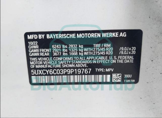 This BMW X6 2023 - VIN: 5UXCY6C03P9P19767 was originally purchased at one of the major insurance auctions in the United States or Canada. The vehicle history is tied directly to its VIN code, which makes it possible to track the origin, condition, and circumstances of the sale. The photographs provided represent the actual state of the car at the moment of auction and serve as an important visual record of its technical and cosmetic condition.