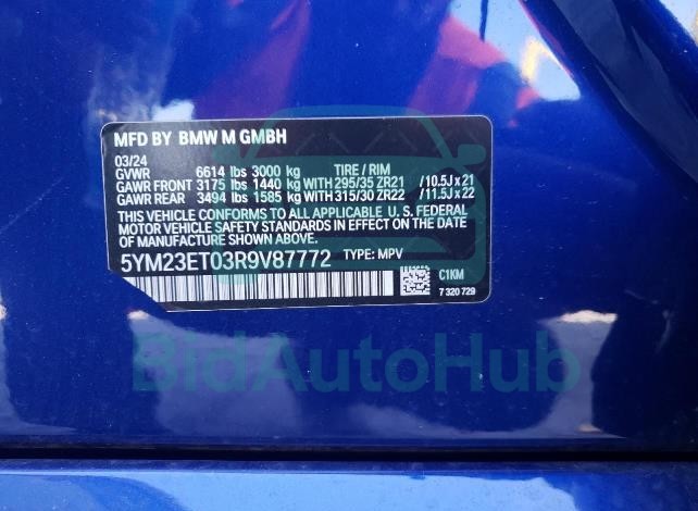 This BMW X6 2024 - VIN: 5YM23ET03R9V87772 was originally purchased at one of the major insurance auctions in the United States or Canada. The vehicle history is tied directly to its VIN code, which makes it possible to track the origin, condition, and circumstances of the sale. The photographs provided represent the actual state of the car at the moment of auction and serve as an important visual record of its technical and cosmetic condition.