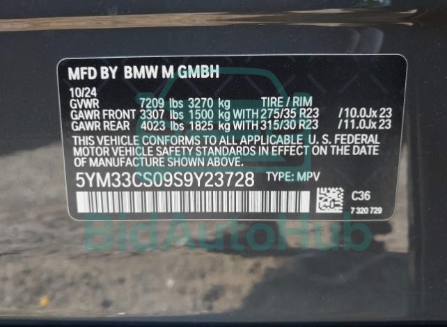 This BMW XM 2025 - VIN: 5YM33CS09S9Y23728 was originally purchased at one of the major insurance auctions in the United States or Canada. The vehicle history is tied directly to its VIN code, which makes it possible to track the origin, condition, and circumstances of the sale. The photographs provided represent the actual state of the car at the moment of auction and serve as an important visual record of its technical and cosmetic condition.