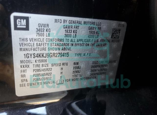 | VIN | 1GYS4KKJ9GR279415 |