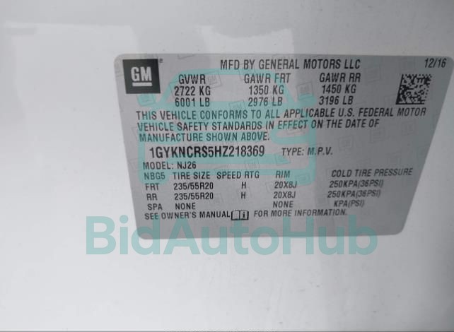 | VIN | 1GYKNCRS5HZ218369 |