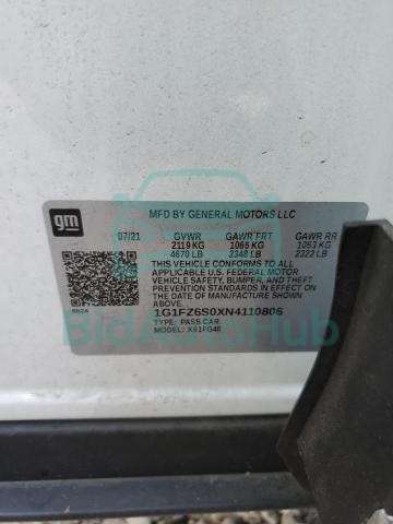 This CHEVROLET BOLT EUV 2022 - VIN: 1G1FZ6S0XN4110806 was originally purchased at one of the major insurance auctions in the United States or Canada. The vehicle history is tied directly to its VIN code, which makes it possible to track the origin, condition, and circumstances of the sale. The photographs provided represent the actual state of the car at the moment of auction and serve as an important visual record of its technical and cosmetic condition.
