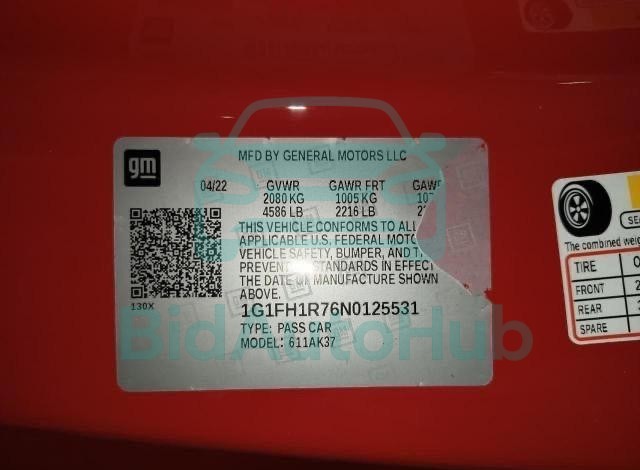 This CHEVROLET CAMARO 2022 - VIN: 1G1FH1R76N0125531 was originally purchased at one of the major insurance auctions in the United States or Canada. The vehicle history is tied directly to its VIN code, which makes it possible to track the origin, condition, and circumstances of the sale. The photographs provided represent the actual state of the car at the moment of auction and serve as an important visual record of its technical and cosmetic condition.