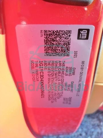This CHEVROLET CORVETTE 2022 - VIN: 1G1YC3D4XN5106421 was originally purchased at one of the major insurance auctions in the United States or Canada. The vehicle history is tied directly to its VIN code, which makes it possible to track the origin, condition, and circumstances of the sale. The photographs provided represent the actual state of the car at the moment of auction and serve as an important visual record of its technical and cosmetic condition.